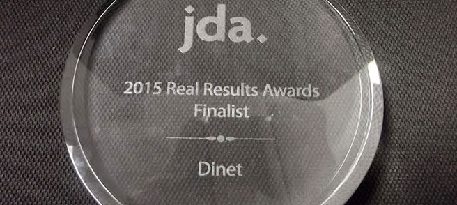 Recibió el reconocimiento como finalista en el marco de los 2015 JDA Real Results Award Program, premiación que agrupa a todas las implementaciones de productos JDA y sus resultados a nivel mundial. El éxito de DINET se basa en su personal, equipo humano altamente calificado con experiencia, comprometido y con una gran actitud de servicio hacia sus clientes, capacidad de adaptar los procesos a las necesidades particulares de cada operación y soportados por un sistema tecnológico de primer nivel.